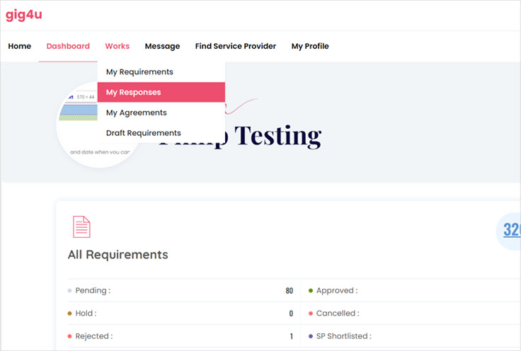 Step 2: In "My response" page you'll find the list of service providers who have responded or bid on your posted requirement.
