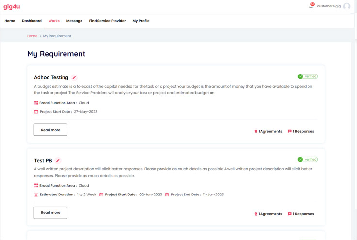 1. Go to "works" tab > Choose “my requirements”. On that page you’ll find all your posts.