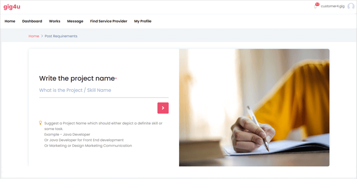 If you are an employer or anyone looking or high skilled freelancer, you have the freedom to post your job requirement on gig4u. The first step is to sign up as a customer on our website, Gig4u.co. After you've finished registration, please follow these steps: