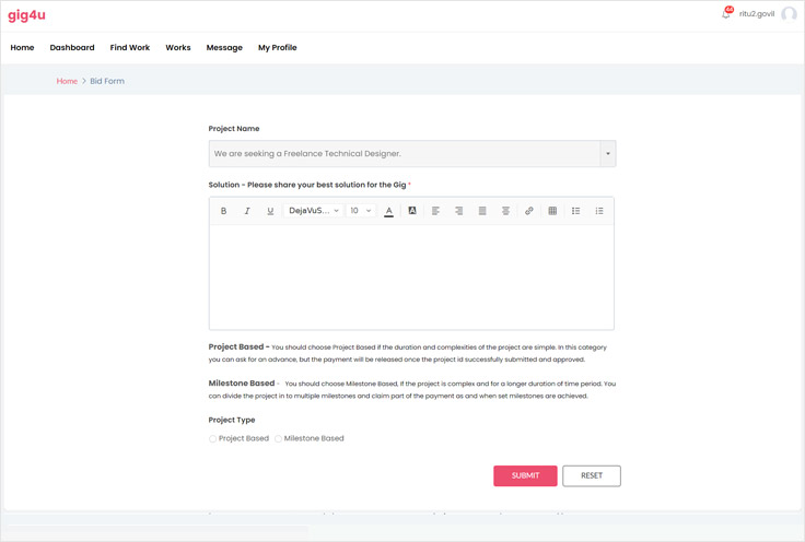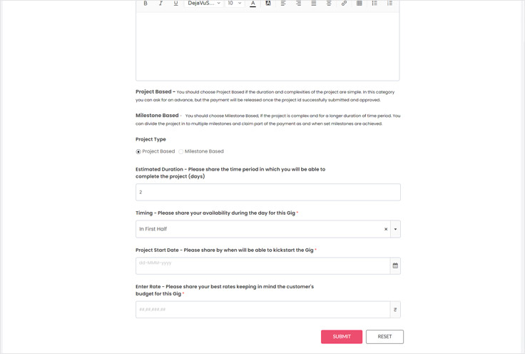 - 2nd page - Choose the payment type i.e Project or milestone. Choose as per your flexibility and convenience.